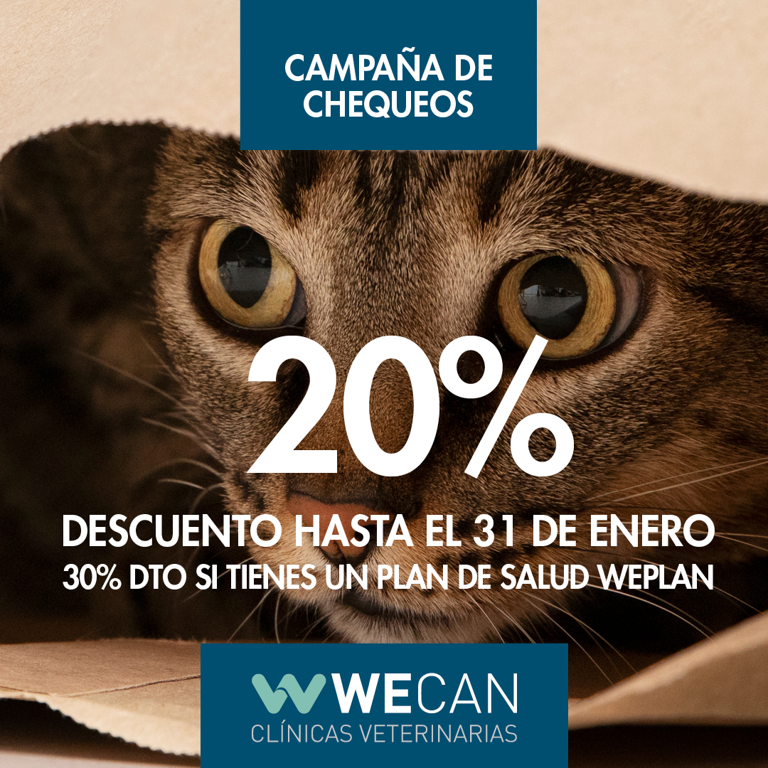 Para evitar incertidumbres, puedes agendar una cita hoy mismo y aprovechar el 20% de descuento disponible por tiempo limitado en el chequeo de tu mascota, o incluso un 30% si cuentas con un WePlan.